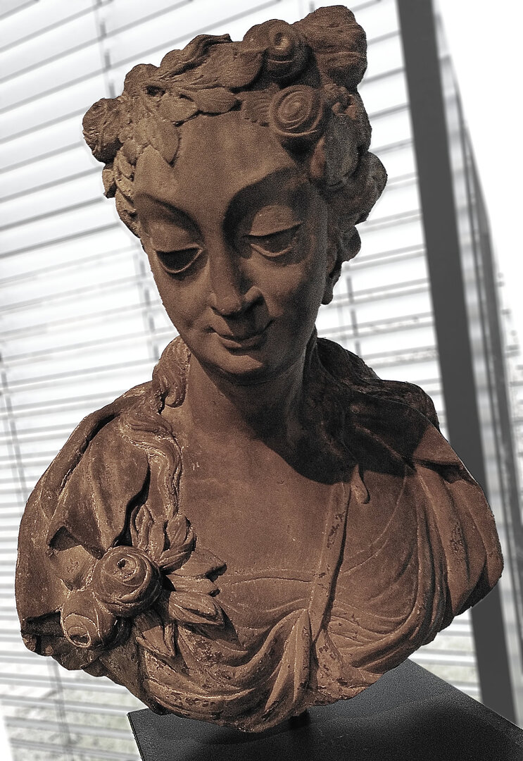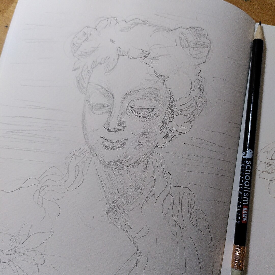 But it was cold and damp, and there were some interesting statues inside that I had thought last time (and also on previous visits!) that I would like to draw. So in I went – and, anticlimax, I did not meet last week’s employees at all 😁️ Also, I was prepared, with a small belt pouch for my art supplies, that I was able to carry in. And I took one of the foldable stools that the museum provides, probably for people who cannot stand too long – a great service, also for artists! :)