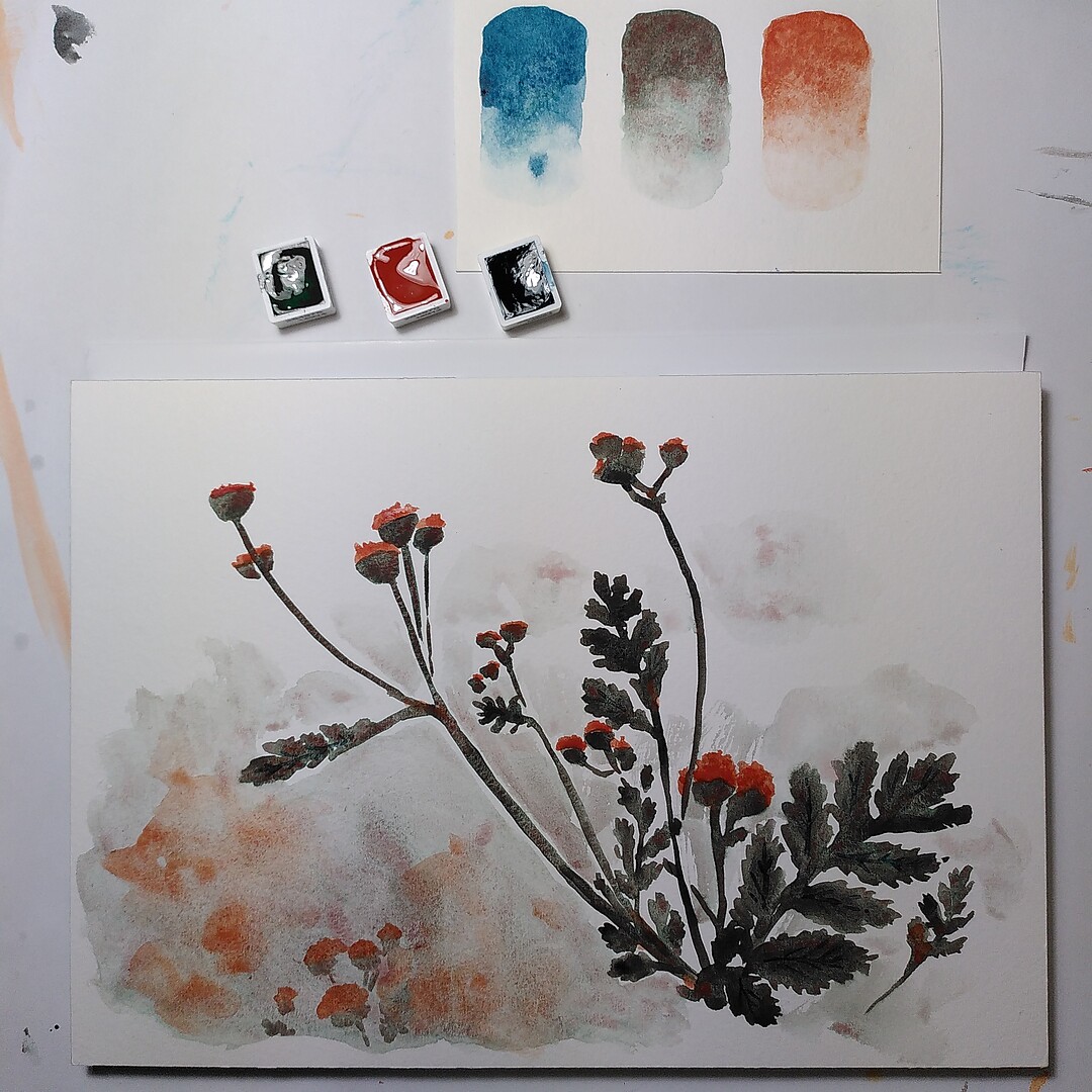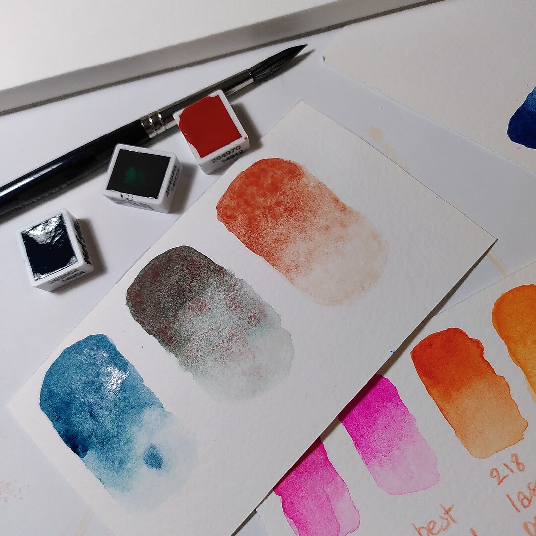 But this Monday I had to run an errand not far from the Gerstaecker store, and could not resist paying the store a visit… and there buying some watercolours, including 3 of the supergranulating ones :) And so this Art Practice Day was dedicated to trying them out!
