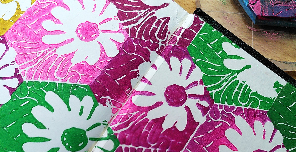 It’s been a moment since I last tried my hand at repeating patterns, or stamp carving. Today I’m diving back with an obviously much too ambitious project: carving a stamp for an hexagon-based pattern – also, small enough to repeat on the “end papers” of my A6-size sketchbook 😅️.
